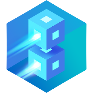 Two paired objects hover over the road, overcoming obstacles and collecting loot in the cubic world. Their movements are related, they are twins.